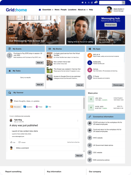As the well-deserved winner of the Best Intranet of 2022, National Grid caught the attention of the Simply judges with Grid:Home. Since its launch in 2019, Grid:Home has gone on to win several awards on account of its strategic design and intelligent personalization. The platform offers both desktop and mobile experiences that support a significant deskless workforce with access to the systems and information they need to do their best work.